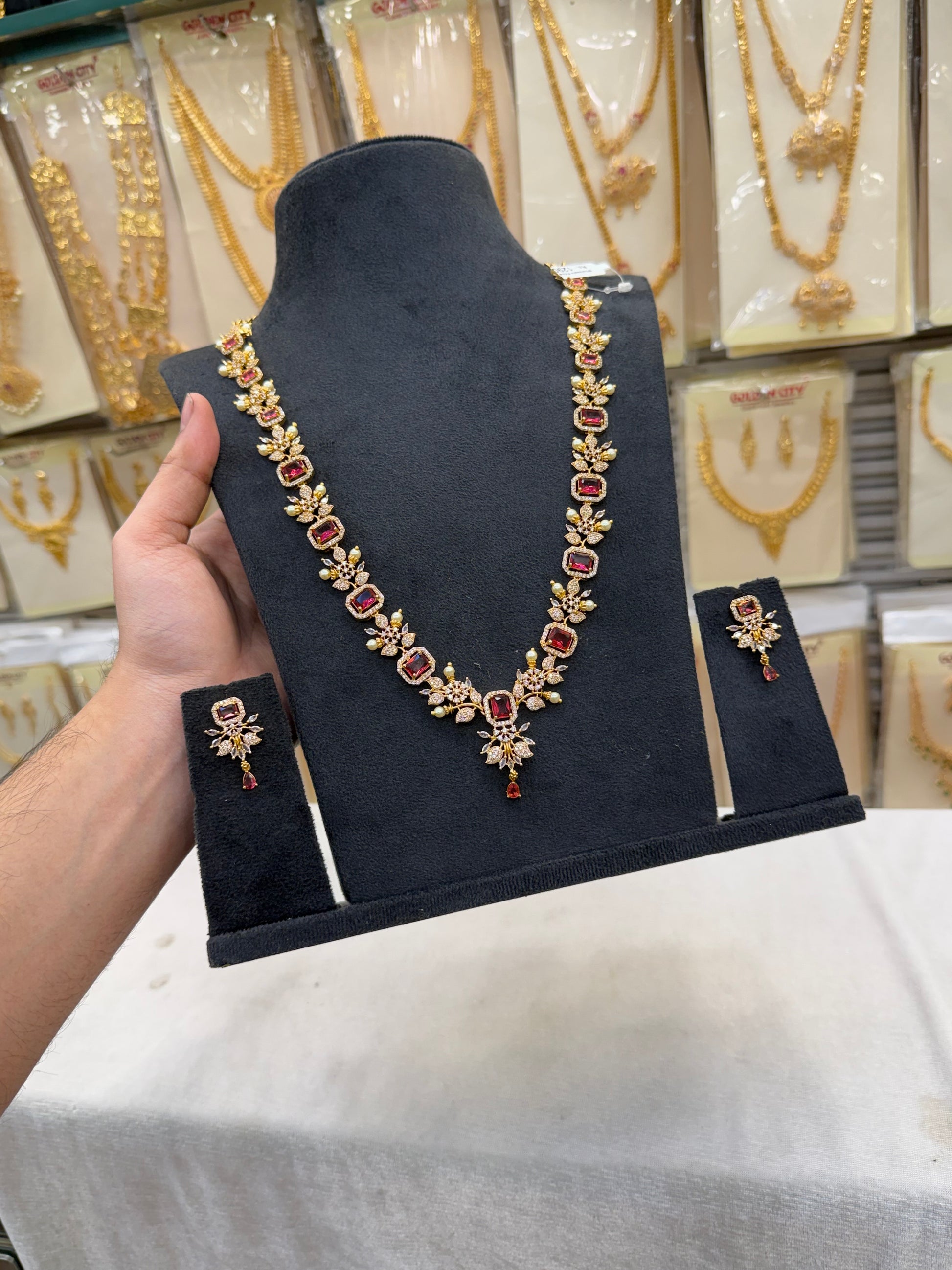 Explore our premium A.D. Haram collection featuring grand long necklace designs with sparkling American Diamonds — perfect for bridal and wedding occasions.