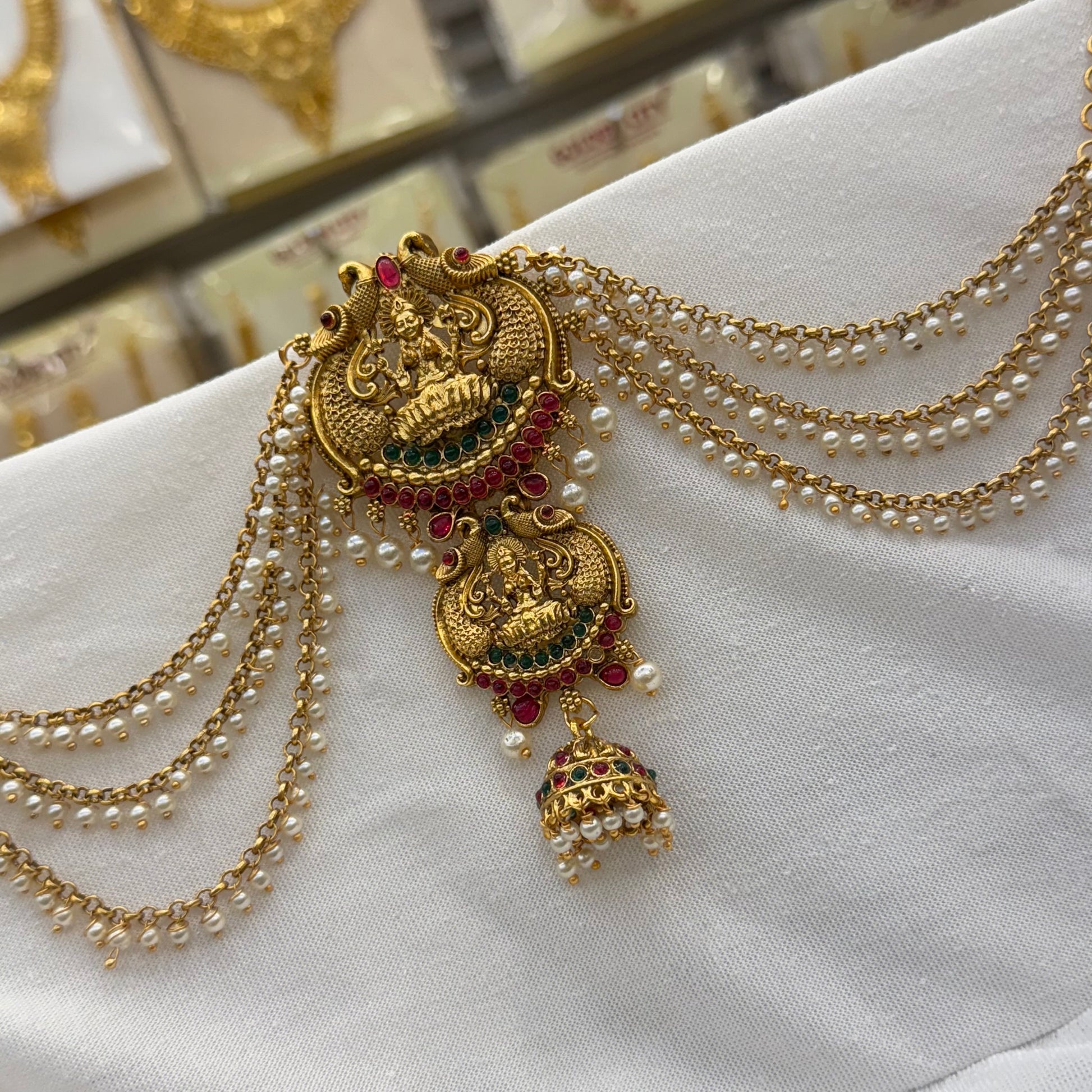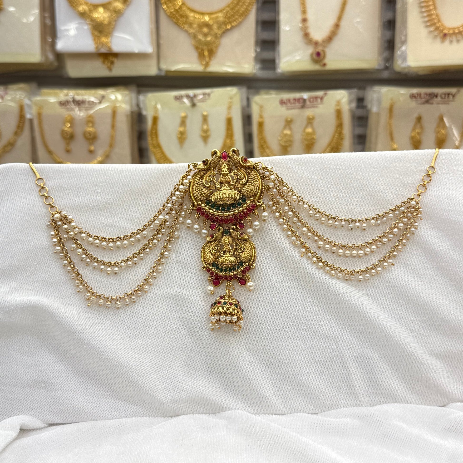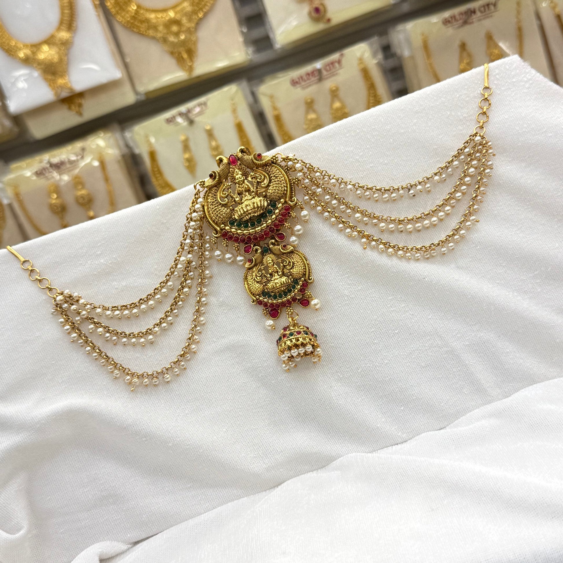 Featuring majestic peacock motifs and a graceful three-layer design, this antique tikka showcases rich tradition and ornate beauty — ideal for a regal bridal or festive look.