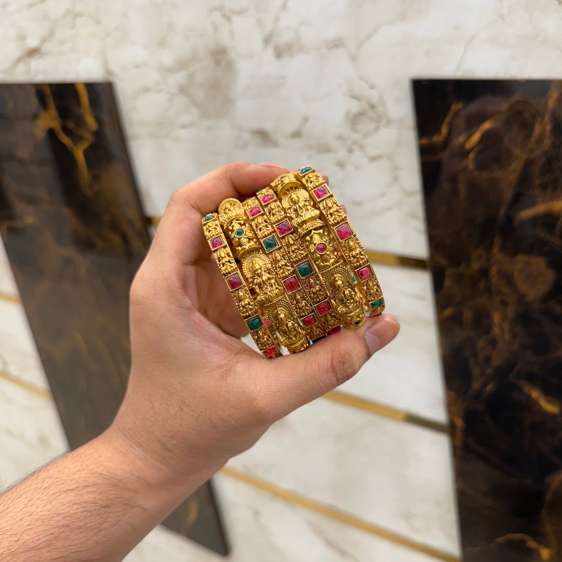 Crafted with intricate antique detailing and timeless design, this bangle set exudes traditional elegance and sophistication — perfect for complementing bridal, festive, or ethnic ensembles.