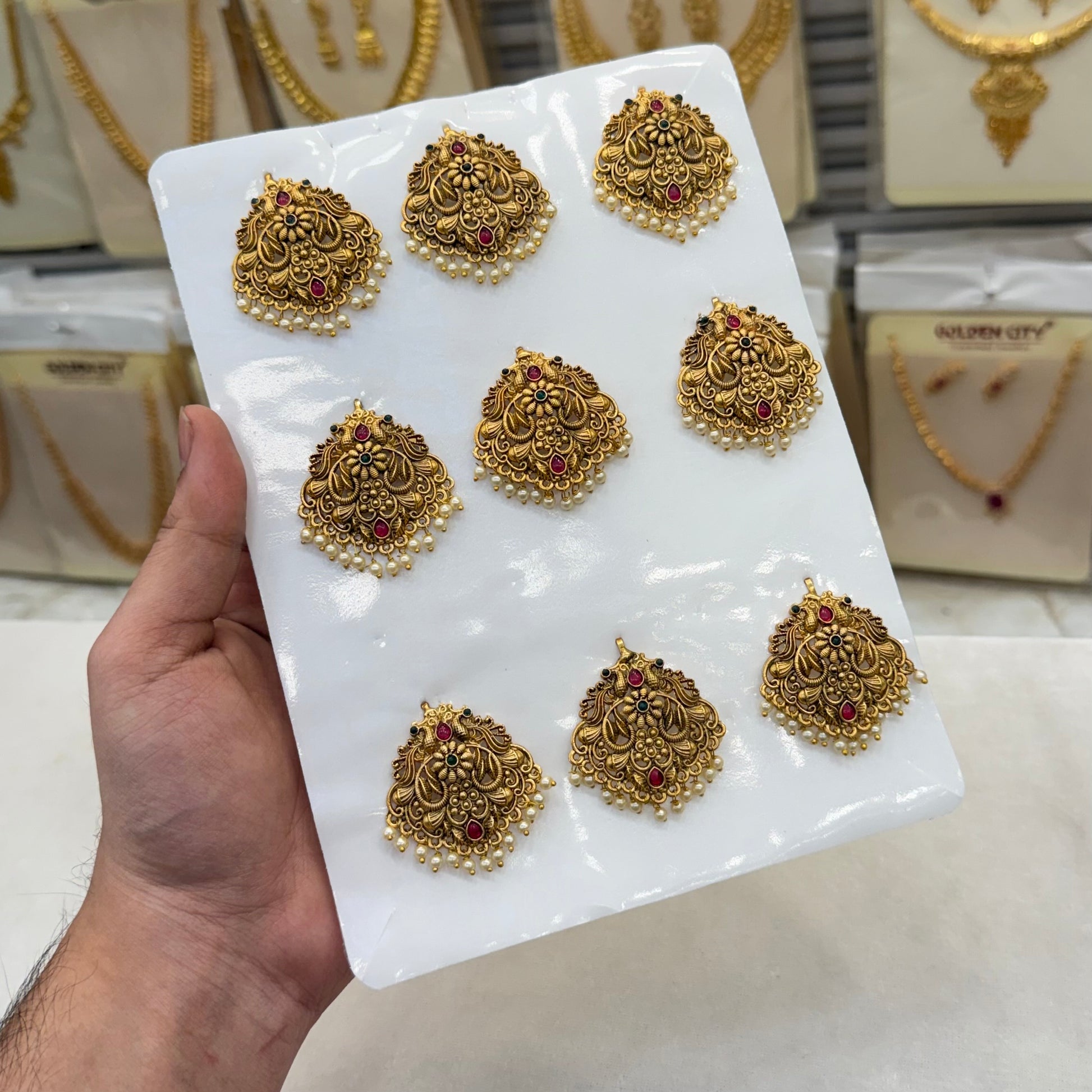 Showcasing detailed antique work and classic craftsmanship, this 9-piece jada billa set brings traditional grandeur to your hair — perfect for completing a regal bridal or festive look.