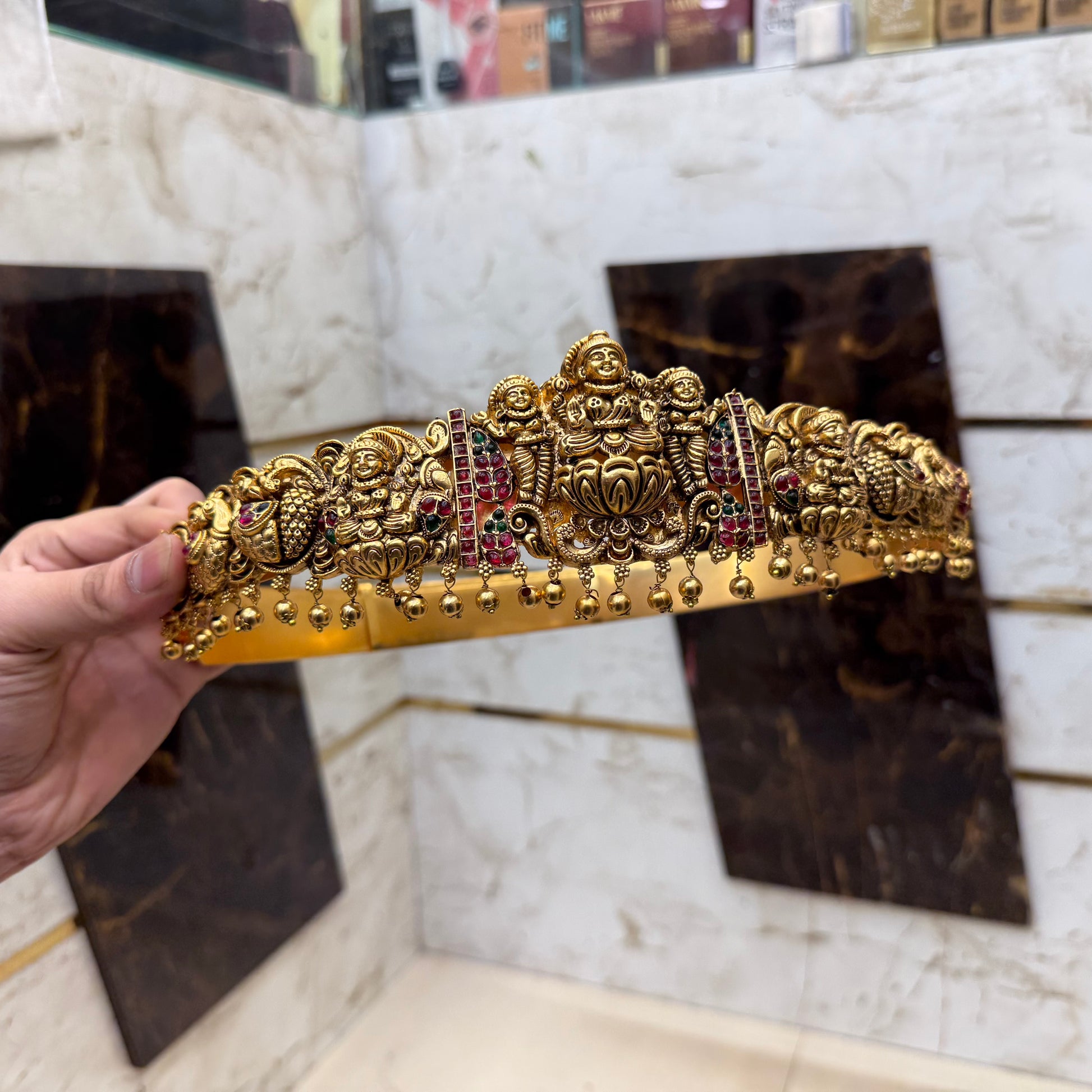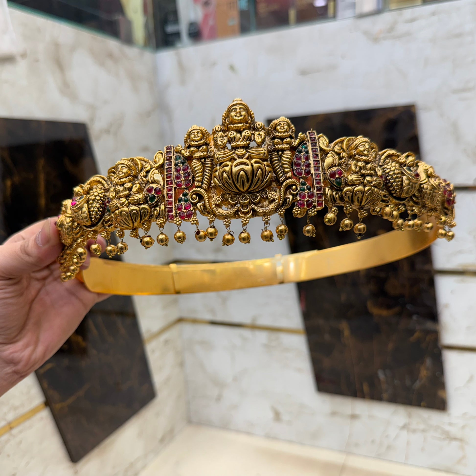 Enhance your bridal look with our Heavy Bridal Antique Hipbelt. This unique piece features intricate antique work that adds a touch of elegance to any wedding ensemble. Complete your outfit with this stylish hipbelt and feel confident and stunning on your special day.