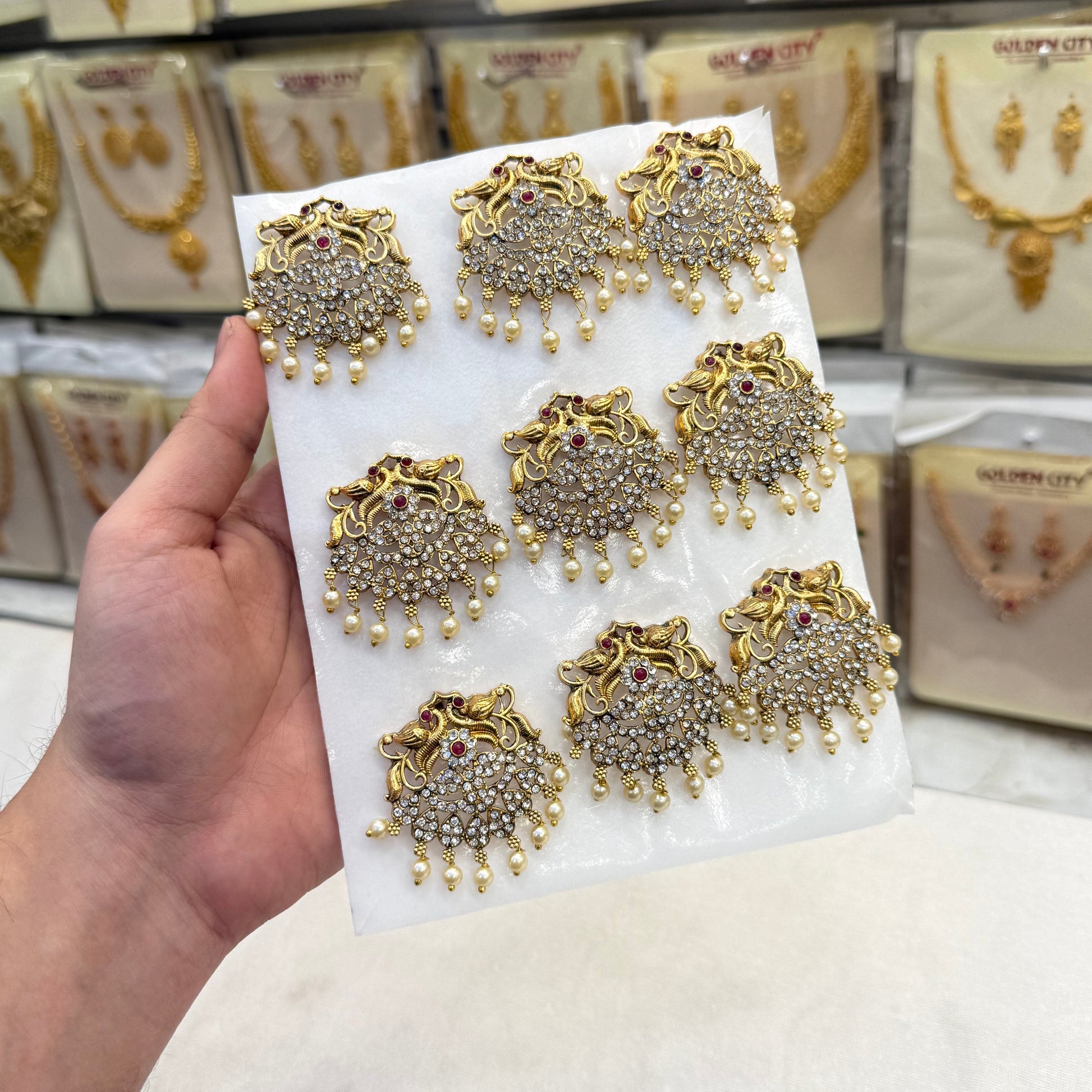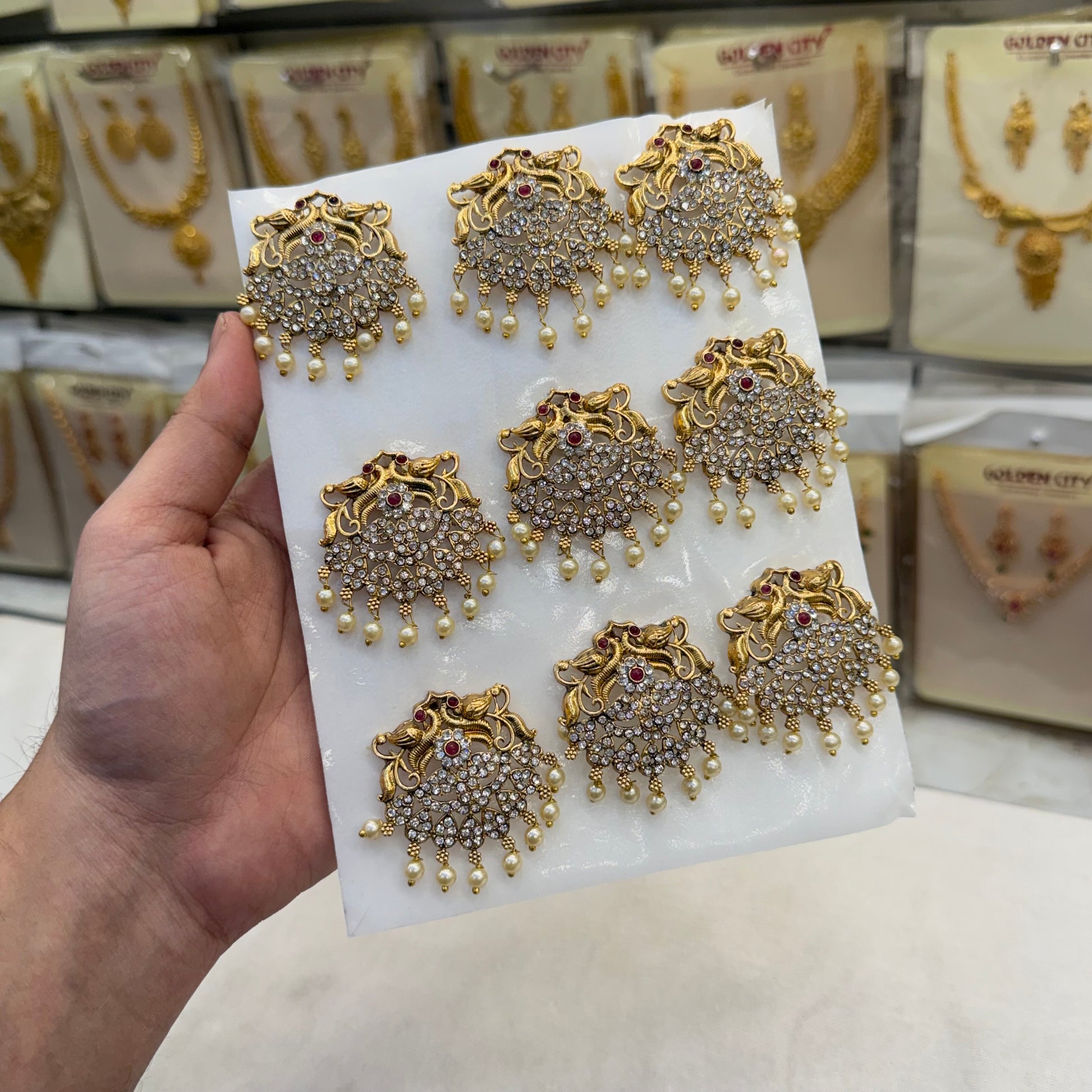 Elevate your hairstyle with our Floral Charm Jada Billa set. This nine piece set includes beautiful hair accessories that will add a touch of charm to any look. Perfect for any occasion, this set is a must-have for any fashion-forward individual. Elevate your style with ease.