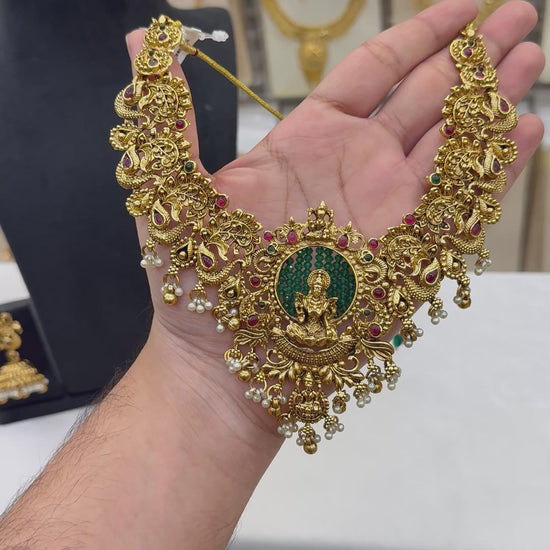 Delicately designed with lotus-inspired motifs and subtle bead accents, this simple necklace brings a touch of traditional charm and elegance — perfect for everyday and festive wear.