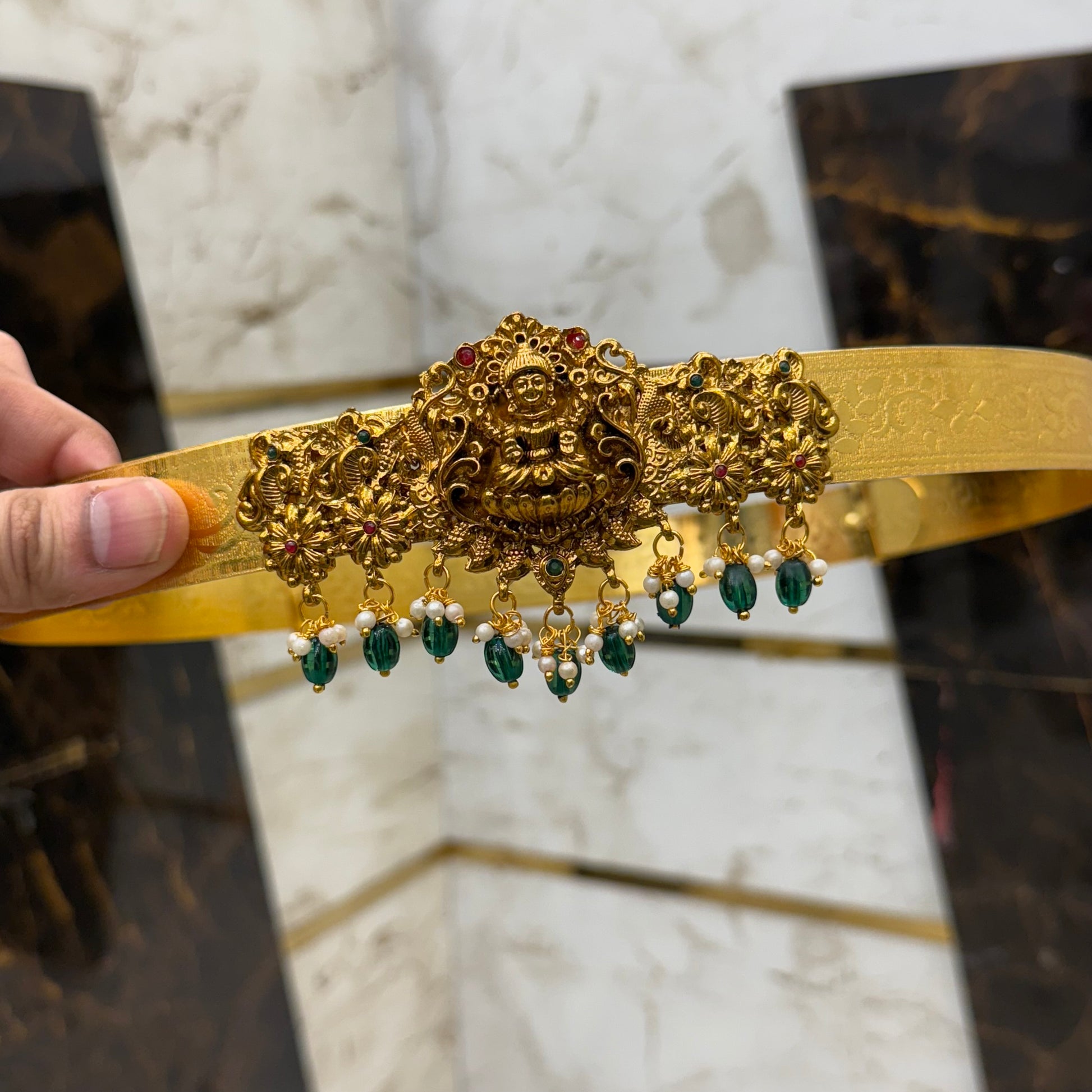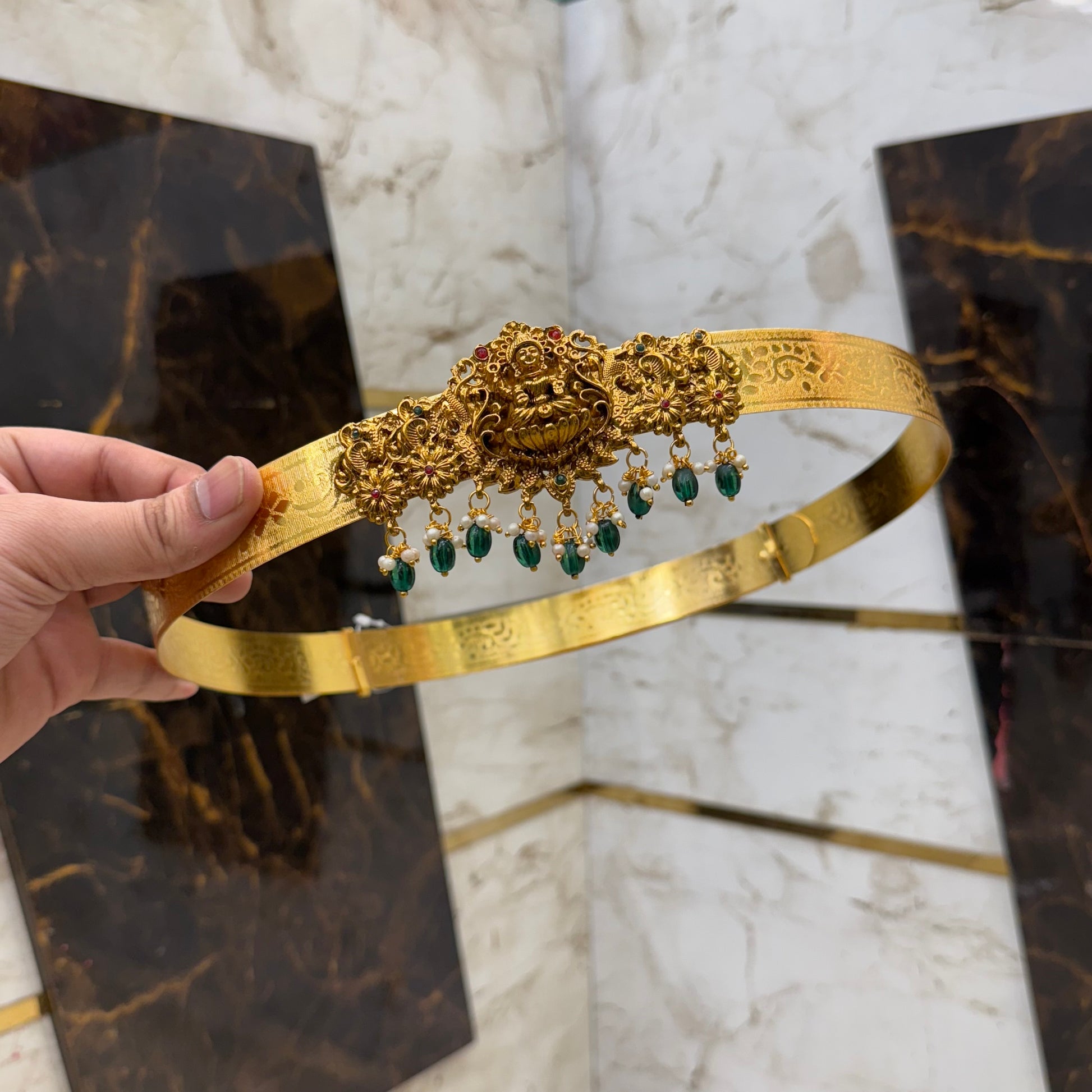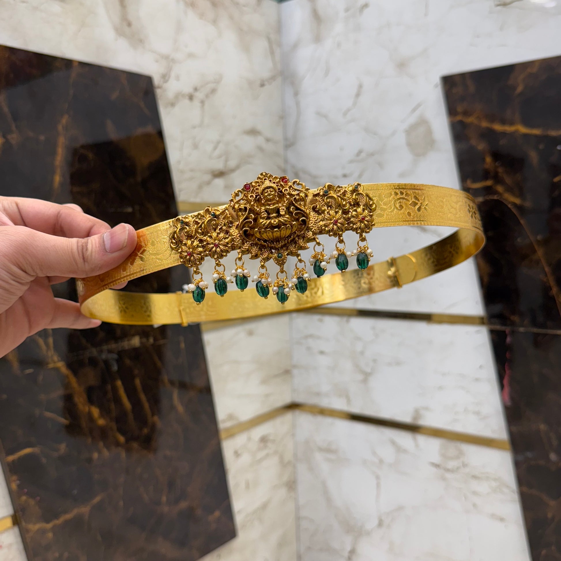 Featuring a striking single pendant and adjustable fit, this free-size hipbelt blends comfort with traditional elegance — perfect for adding definition and grace to your bridal or festive attire.