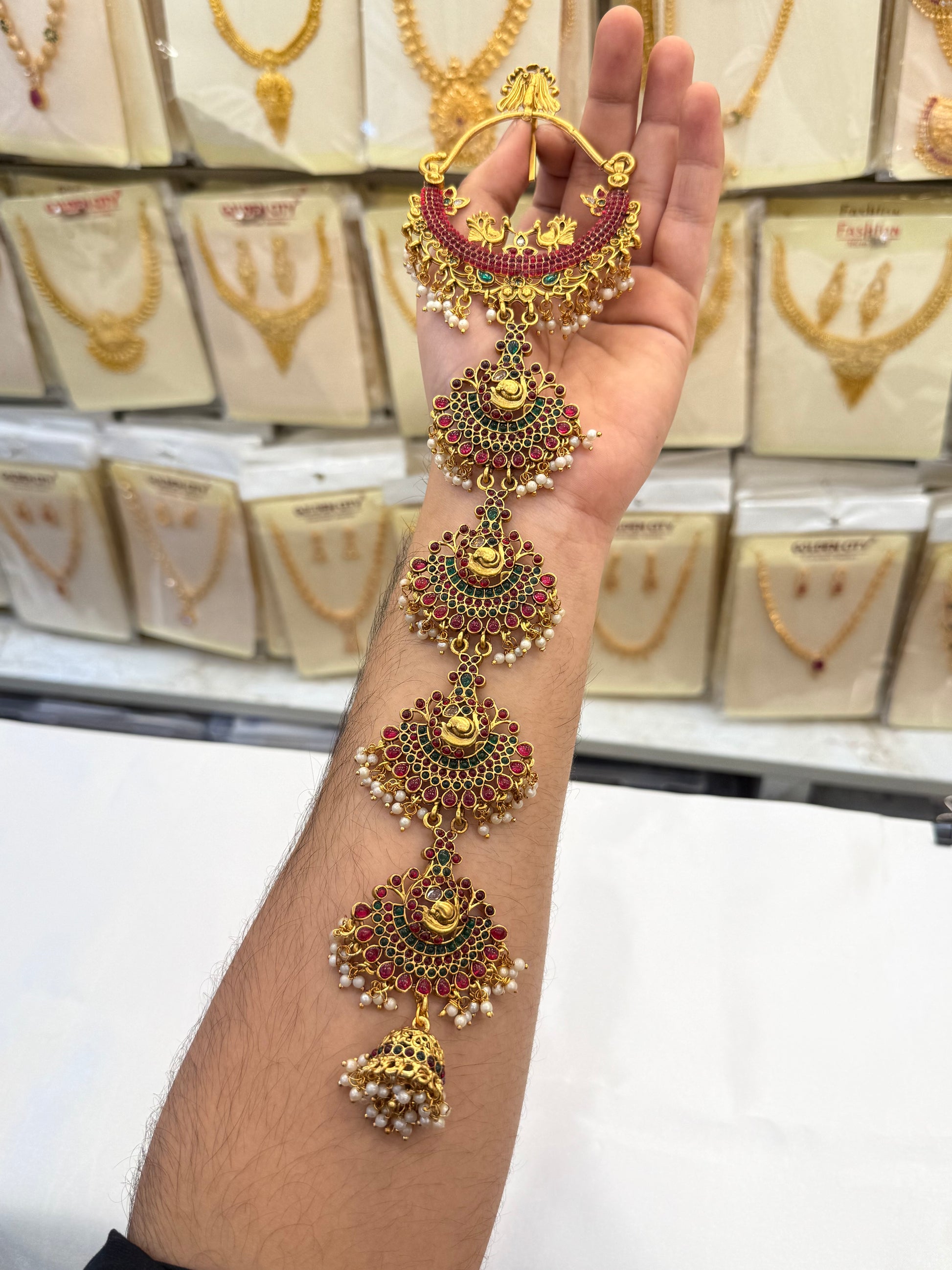 Upgrade your jewellery collection with this elegant Jade Ruby Stone Design, crafted with perfectly matched semi-size stones for a neat and premium look ๐